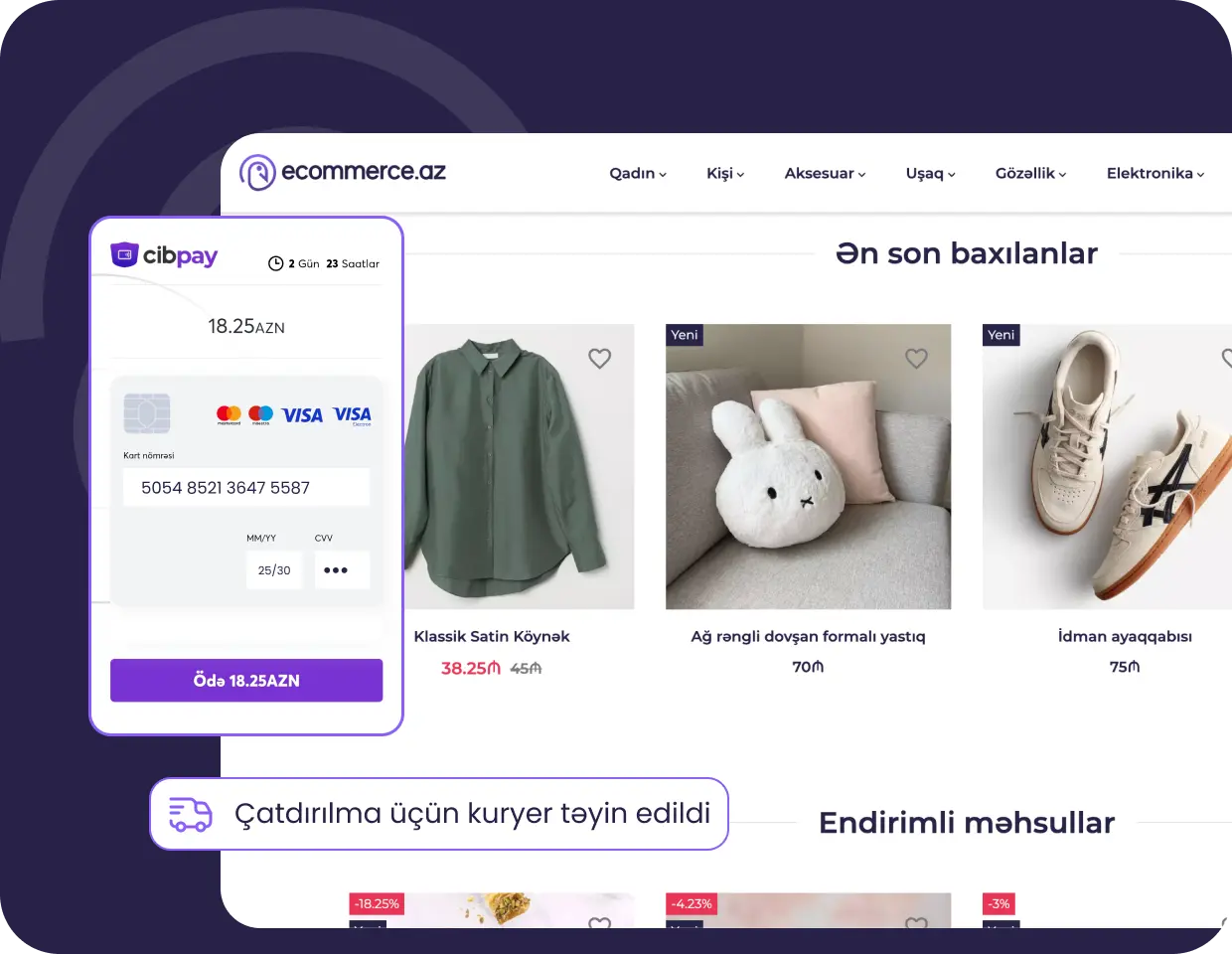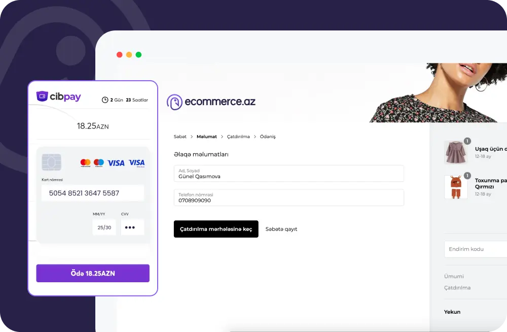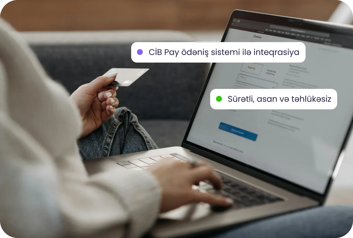Mobil tətbiq və veb-saytda satış et, quraşdırılmış CİB Pay ödəniş sistemi ilə ödənişlərini asanlıqla qəbul et.