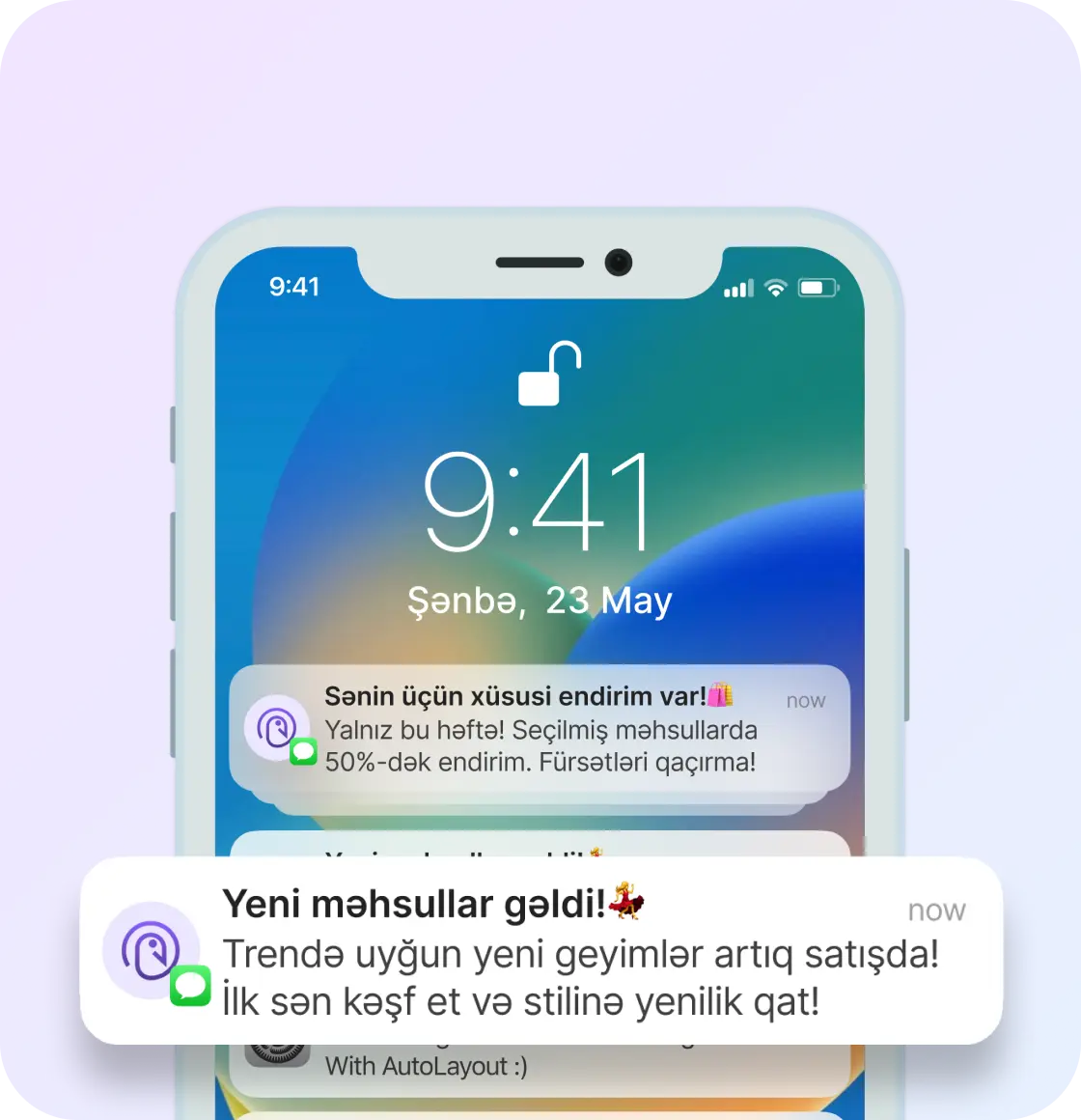 Müştərilərə sifariş statusları, təsdiqləmələr və kampaniyalar üçün SMS və bildirişlər göndərmək mümkündür. Heç bir texniki çətinlik olmadan SMS və telefoniya xidmətləri ilə inteqrasiya et və sistemin kəsilməzliyini təmin et.