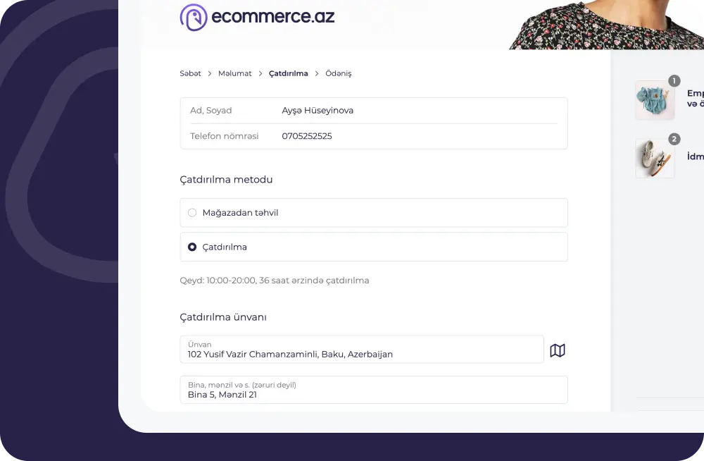 Ölkə daxilindəki istənilən çatdırılma xidməti ilə inteqrasiya ilə sifarişlərin çatdırılması indi daha da asandır. Onlayn mağazanın daxilindən sifarişlərini izlə və asanlıqla çatdırılmasını təmin et.