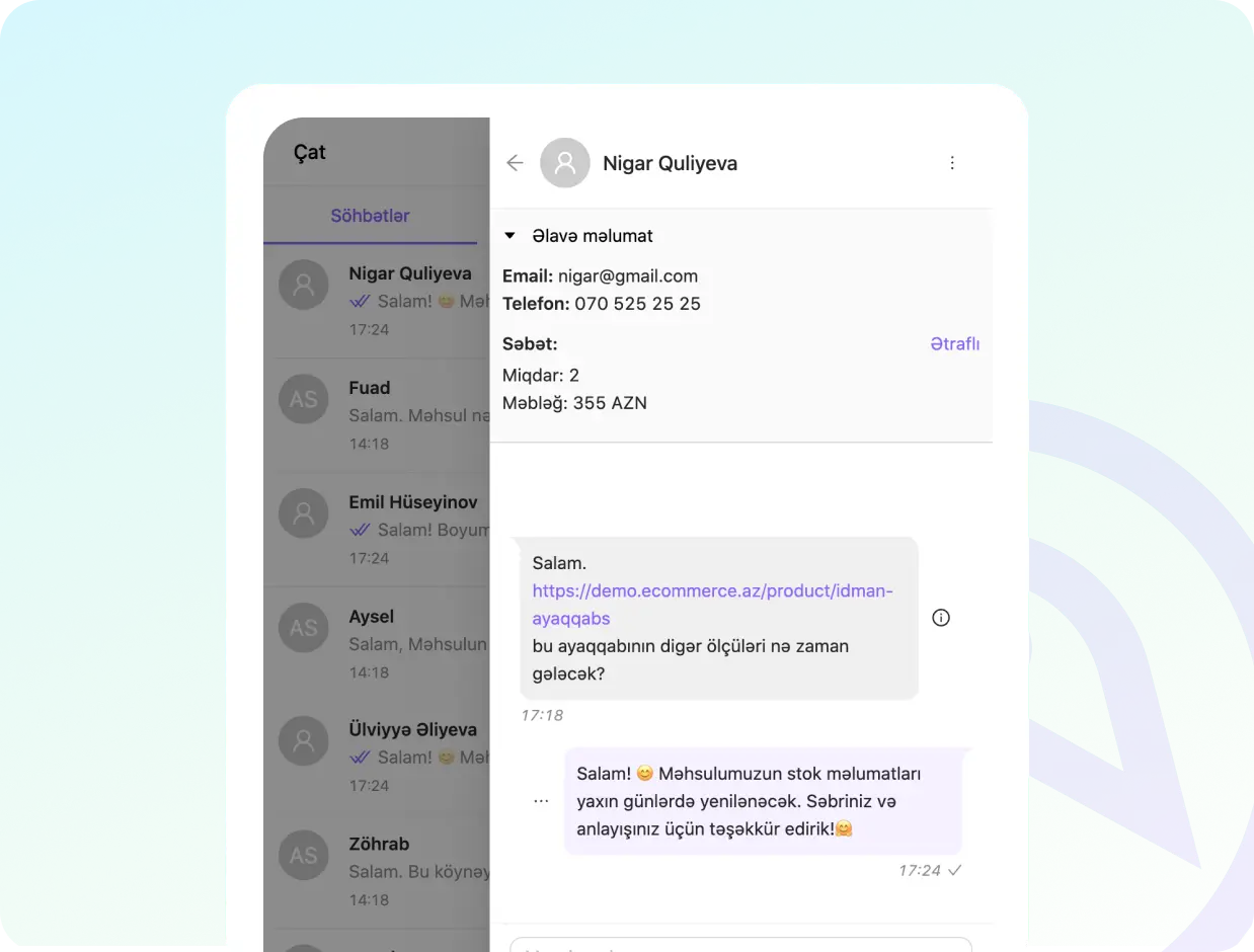 Müştərilərlə əlaqə, ödənişlər və logistika proseslərini vahid platformada avtomatlaşdıraraq, satış təcrübəni bir üst səviyyəyə qaldır.